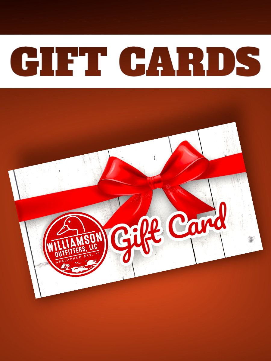 Looking for a unique gift this year for that special someone? A Williamson Outfitters Gift Card makes an exceptional gift for all fishing, hunting, and outdoor enthusiasts! WO Gift Cards are redeemable toward any of our famous charters (Fishing, Duck Hunting, Gator Hunting, Scalloping, Boat Rides, Island Escorts, and Flounder Gigging) as well as all WO gear and merchandise. Our gift cards make great gift ideas for Christmas, Birthdays, Valentines Day, Father’s Day, Graduation, Anniversary, etc.